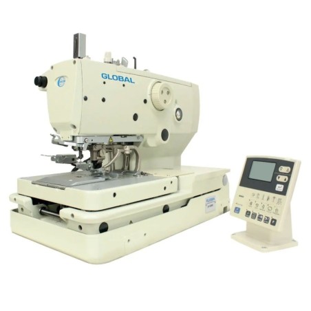 Vysokotáčkový průmyslový dvounitný konfekční dírkovací šicí stroj, Global BH 9982, je elektronicky řízený a vybaven pokročilými funkcemi pro efektivní a přesné šití dírek. Tento model je ideální pro komplexní konfekční aplikace.