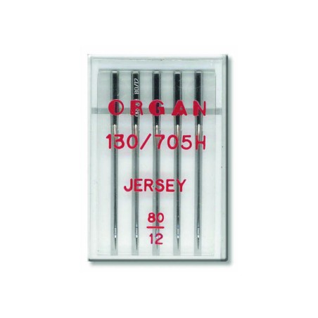 Jehly ORGAN 130/705H Jersey – 5 ks. Kulatá špička (SUK) šetrná k pleteninám bez přeseknutí vláken.