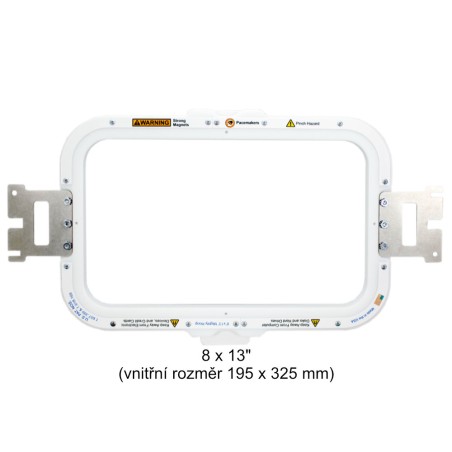 Magnetický vyšívací rámeček Mighty Hoop o velikosti 8 x 13″ (vnitřní rozměr 195 x 325 mm) Vám usnadní práci při upínání všech vyšívaných materiálů. Oproti klasickým rámečkům materiál uchytíte až o 75% rychleji. To však není poslední výhoda. Rámeček díky magnetům uchytí materiál horizontálně a díky mezeře mezi okrajem vnitřního a vnějšího rámečku nedochází k “popálení” materiálu.