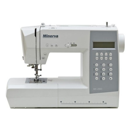 Minerva MC250C je elektronický domácí šicí stroj s 197 programy a 7 typy automatických 1-krokových dírek. Nabízí horizontální chapač, LED displej, tlačítko START/STOP, polohování jehly, posuvník rychlosti a plynulé nastavení délky (do 4,5 mm) i šířky stehu (do 7 mm). V balení je bohaté příslušenství. Záruka 2 roky.